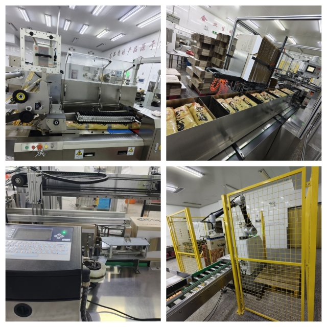 经过与设备厂家近一年的深度合作和技术攻坚,该条全自动包装线目前已正式投入运行。该条包装线集成了前沿枕式小包装技术与专属装箱方案,实现了从卷膜封装、金属检测、精准称重,到自动化装箱、高效封箱及自动码垛全流程的无缝对接。通过这一技术革新,不仅有效减少了人为操作失误,降低了生产成本,还显著提升了生产环境的卫生标准,确保出厂产品的优良品质。