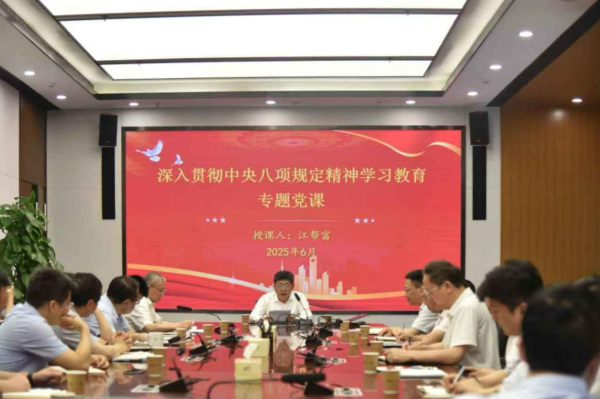 江帮富以《深入贯彻中央八项规定精神 以优良作风激发干事创业新作为》为主题,围绕深学细悟习近平总书记关于加强党的作风建设的重要论述、学习好运用好党的十八大以来深入贯彻中央八项规定精神的成效和经验、深刻认识违反中央八项规定精神的严重危害、持续推动作风建设常态长效等四个方面作了深入解读。